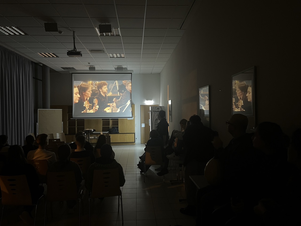 Bei der letzten Gesamtprobe des Tages wurden die beiden Gruppen wieder zusammengeführt, um das Erarbeitete gemeinsam umzusetzen. Nach dem langen Probentag hieß es: zusammenfinden und einen Video-Rückblick auf unsere erfolgreiche Teilnahme am Wettbewerb für Auswahlorchester (wao22, wir berichteten hier…) nehmen. Aber auch danach blieb noch genügend Zeit für ein paar Runden Poker oder gemütliche Gespräche.