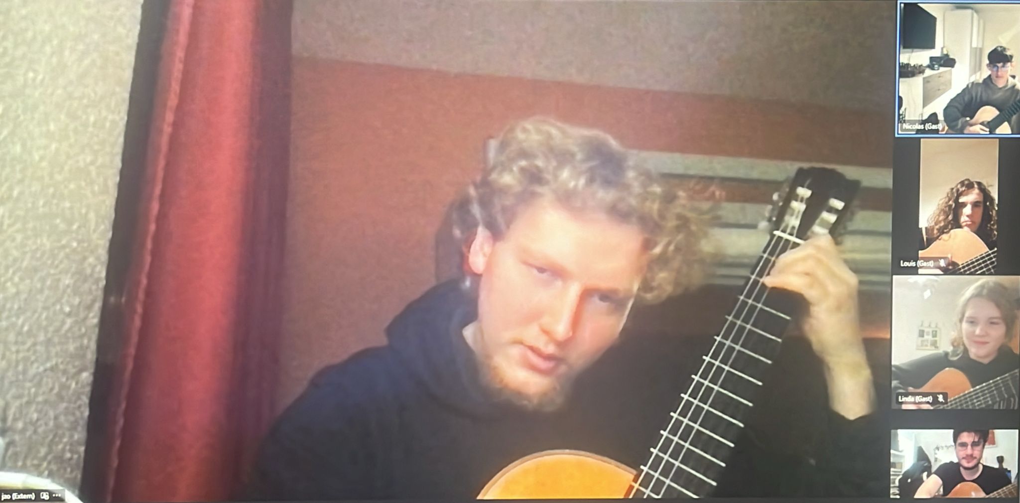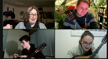 Hierzu trafen sich die Orchesterstimmen mit Birgit Wendel (Mandolinen 17.12. + Mandola 10.12.2024), Jonas Khalil (Gitarrengruppe 1, 16.12.) und Flavius Wagner (Gitarrengruppe 2, 20.12.) zu digitalen Stimmproben, um die technischen Vorbereitungen für die erste Arbeitsphase im Januar 2024 in Heilbronn zu legen.